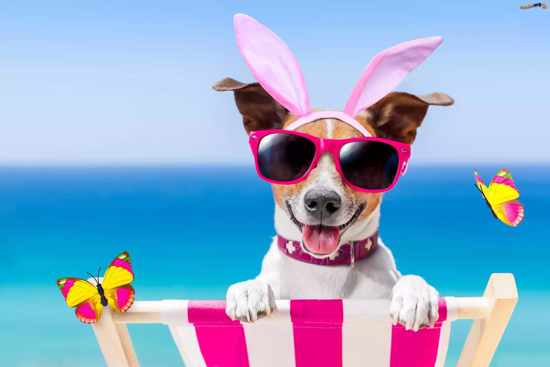 Motylki, Śmieszne, Leżak, Jack Russell terrier, Pies, Okulary, Wakacje, Pieski