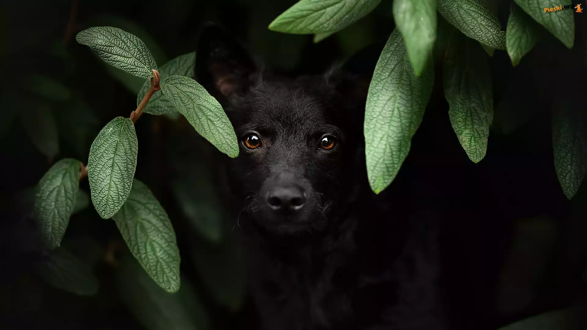 Zielone, Pies, Czarny, Kundel, Liście, Pieski
